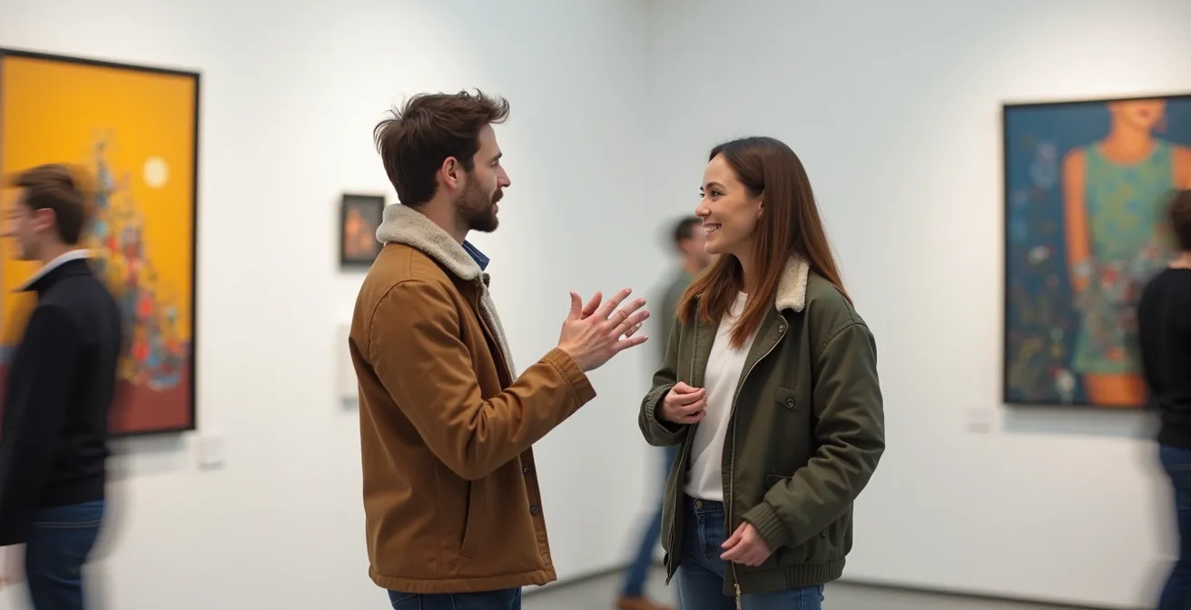 Le silence respectueux d’un musée peut être intimidant. La peur de déranger ou de passer pour un expert autoproclamé paralyse souvent toute initiative. Pourtant, ce contexte est idéal pour des micro-interactions de qualité. L’astuce n’est pas de délivrer une analyse brillante, mais de poser une question ouverte qui invite au partage plutôt qu’à la démonstration. Il s’agit de créer une petite bulle de conversation où l’autre se sent immédiatement à l’aise et valorisé dans son opinion. En France, le terrain est fertile : une étude récente montre que 39% des Français ont visité un musée ou une exposition en 2024, confirmant un intérêt partagé.